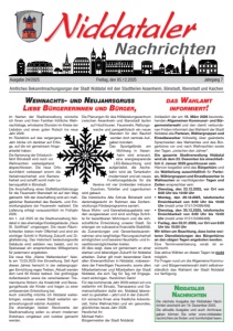 Amtliches Bekanntmachungsorgan der Stadt Niddatal mit den Stadtteilen Assenheim, Bönstadt, Ilbenstadt und Kaichen Freitag, den 05.12.2025 Nachrichten Niddataler Ausgabe 24/2025 Jahrgang 7 im Namen der Stadtverwaltung wünsche ich Ihnen und Ihren Familien fröhliche Weih- nachtstage, erholsame Stunden im Kreise der Liebsten und einen guten Rutsch ins neue Jahr 2026. Im Rückblick auf das vergangene Jahr blicke ich dankbar auf Erfol- ge, auf die wir gemeinsam hinge- arbeitet haben: Die Sanierung der Ortsdurch- fahrt Bönstadt wird noch vor Weihnachten weitestgehend abgeschlossen. Die neue Orts- durchfahrt verbessert enorm die Verkehrssicherheit und Barriere- freiheit und schafft somit mehr Le- bensqualität in Bönstadt. Die Anschaffung eines Staffellöschfahrzeugs für die Feuerwehr Ilbenstadt ist auf den Weg gebracht. Mit der Anschaffung wird ein maß- geblicher Bestandteil des Bedarfs- und Ent- wicklungsplans der Feuerwehr realisiert. Die Lieferung erfolgt voraussichtlich im Frühjahr 2026. Am 1. Juli 2025 ist die Stadtverwaltung Nid- datal in das ehemalige Klostergebäude „Haus St. Gottfried“ umgezogen. Die neuen Räum- lichkeiten bieten mehr Offenheit und sind ein wichtiger Schritt in Richtung Zukunft und Di- gitalisierung. Das historisch bedeutungsvolle Gebäude wird seitdem neu belebt, und im Speisesaal ein ansprechendes Mittagsmenü für jedermann angeboten. Die neue Kita „Kleine Weltendecker“ feier- te am 13.05.2025 ihre Einweihung. Seit April dieses Jahres herrscht in der siebengruppi- gen Einrichtung reges Treiben. Aktuell werden dort rund 80 Kinder betreut. Der großzügige Außenbereich sowie die verschiedenen The- menräume fördern die Kreativität und Bewe- gungsfreude der Kinder und tragen zu einer umfassenden Entwicklung bei. Auch zukünftig möchte ich Niddatal weiter- bringen, sodass unsere Stadt weiterhin ver- antwortungsvoll wächst. Ausblick: Die ehemaligen beiden Stockwerke der Stadtverwaltung sollen zu einem modernen Ärztehaus umgebaut und nutzbar gemacht werden. w eihNachts - uNd N euJahrsGruss l iebe b ÜrGereriNNeN uNd b ÜrGer , Die Planungen für das Hilfeleistungszentrum zwischen Assenheim und Ilbenstadt laufen auf Hochtouren. Feuerwehr, Rettungs- wache und perspektivisch ein neuer Standort für den Bauhof werden dort zentrale Auf- gaben bündeln. Das Sportgelände am Mühlweg in Assen- heim wird erneuert, eine energiesparende LED-Beleuchtung wird aufgerüstet, die Asche- bahn wird als Tartanbahn modernisiert und ein neues Funktionsgebäude für die Vereine mit vier Umkleiden inklusive Duschen, Toiletten und Lagerräumen wird gebaut. Die historische Alte Schule Bönstadt wird denkmalgerecht im Rahmen des Dorfent- wicklungs-Förderprogramms saniert. Neue Wohn- und Gewerbebaugebiete wer- den ausgewiesen und sind wichtige Schrit- te für bezahlbaren Wohnraum und die wirt- schaftliche Entwicklung unserer Stadt. So erlangen wir sukzessive finanzielle Stabilität, da Zuwendungen und Gewerbesteuerein- nahmen eine langfristige Planungssicherheit ermöglichen und bessere Haushalts- und In- vestitionsmöglichkeiten bieten. All dies zeigt, dass wir gemeinsam an einer starken und lebendigen Zukunft für Niddatal arbeiten. Daher gilt mein besonderer Dank allen Ehrenamtlichen in Niddatal, insbeson- dere der Freiwilligen Feuerwehr, sowie allen Mitarbeiterinnen und Mitarbeitern der Stadt Niddatal, die sich Tag für Tag mit Engage- ment einbringen. Herzlichen Dank! Für das kommende Jahr 2026 setzen wir uns weiterhin mit Einsatz, Transparenz und Ge- meinschaftssinn dafür ein, Niddatal lebens- wert zu gestalten – jetzt und in der Zukunft. Ich wünsche Ihnen eine friedliche Advents- zeit, frohe Weihnachten und ein gesundes, glückliches neues Jahr 2026. Herzlichst Ihr Michael Hahn Bürgermeister der Stadt Niddatal Anlässlich der am 15. März 2026 bevorste- henden Allgemeinen Kommunal- und Bür- germeisterwahl und den damit verbunde- nen Fristen informiert das Wahlamt der Stadt Niddatal alle Parteien, Wählergruppen und Einzelbewerber frühzeitig über geänderte Sprechzeiten des Wahlamtes und des Bür- gerbüros vor und nach Weihnachten sowie den Tagen „zwischen den Jahren“. Die gesamte Stadtverwaltung Niddatal wird ab dem 23. Dezember bis einschließ- lich 2. Januar 2026 geschlossen sein. Hiervon losgelöst wird das Bürgerbüro und die Wahlleitung ausschließlich für Partei- en, Wählergruppen und Einzelbewerber in Wahlsachen an nachfolgenden Tagen und Zeiten ansprechbar sein: • Dienstag, den 23.12.2025, vor Ort von 8:00 Uhr bis 10:00 Uhr • Montag, den 29.12.2025, telefonische Erreichbarkeit von 8:00 Uhr bis 10:00 Uhr (mobil unter 0151/24096496) • Dienstag, den 30.12.2025, telefonische Erreichbarkeit von 8:00 Uhr bis 10:00 Uhr (mobil unter 0151/24096496) • Freitag, den 02.01.2026, vor Ort von 8:00 Uhr bis 10:00 Uhr Wir bitten um Beachtung, dass keine wei- teren Dienstleistungen des Bürgerbüros an den obigen Tagen angeboten werden. Eine Terminvereinbarung vorab ist er- wünscht. Das aktive Wählen an diesen Tagen ist nicht möglich. Für Fragen rund um die Allgemeine Kommu- nal- und Bürgermeisterwahl steht selbstver- ständlich das Wahlamt der Stadt Niddatal zur Verfügung. das w ahlamt iNFormiert ! n iddAtAler n Achrichten Die nächste Ausgabe der Niddataler Nach- richten erscheint am 19. Dezember 2025. Die aktuelle Ausgabe und auch Archivaus- gaben können Sie unter www.niddataler- nachrichten.de finden und komfortabel lesen.