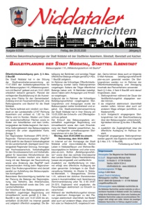 Amtliches Bekanntmachungsorgan der Stadt Niddatal mit den Stadtteilen Assenheim, Bönstadt, Ilbenstadt und Kaichen Freitag, den 20.03.2026 Nachrichten Niddataler Ausgabe 6/2026 Jahrgang 8 Öffentlichkeitsbeteiligung gem. § 3 Abs. 2 BauGB Die Stadt Niddatal hat in der Sitzung der Stadtverordnetenversammlung am 17.07.2023 den Aufstellungsbeschluss für den Bebauungsplan I 16 „Hilfeleistungszent- rum mit Bauhof“ gefasst und am 10.01.2025 ortsüblich bekannt gemacht. Planziel der vorliegenden Bauleitplanung ist die Auswei- sung einer Fläche für den Gemeinbedarf. Zulässig sind ein Feuerwehrstützpunkt, eine Rettungswache und Bauhof für die Stadt Niddatal. Die Fläche befindet sich nördlich von Ilben- stadt an der Landesstraße L3187 Richtung Assenheim und umfasst rd. 1,82 ha. Die Fläche wird im Norden, Westen und Osten von landwirtschaftlichen Flächen sowie im Süden von Ackerflächen und dem Umflu- tungsgraben der Nidda begrenzt. Der räum- liche Geltungsbereich des Bebauungsplans entspricht der unten abgebildeten Karte. (Anlage 1) Der Regionalplan Südhessen (RPS 2010) / Regionale Flächennutzungsplan (RegFNP 2010) stellt für den Bereich Vorbehaltsgebiet für die Landwirtschaft, überlagert durch Vor- ranggebiet Regionaler Grünzug, Vorrangge- biet Hochwasserschutz, Vorbehaltsgebiet für den Grundwasserschutz und Vorbehalts- gebiet für besondere Klimafunktionen dar. Erforderlich wurden insofern eine Abstim- mung mit den Belangen der Raumordnung sowie eine Änderung des RegFNP nach entsprechendem Antrag beim Regionalver- band. Das Änderungsverfahren wird derzeit parallel zur Aufstellung des Bebauungspla- nes durchgeführt. Besonderer Berücksichtigung bedürfen bei der Planung die Belange der Regionalpla- nung, des Verkehrs, des Artenschutzes, der Wasserwirtschaft sowie des Orts- und Landschaftsbildes Der Vorentwurf des Bebauungsplanes ein- schließlich zugehöriger Begründung und Umweltbericht wurde gemäß § 3 Abs. 1 BauGB in der Zeit vom 14.07.2025 bis ein- schließlich 22.08.2025 ins Internet gestellt und zeitgleich öffentlich ausgelegt. Die Be- B auleitplaNuNg der s tadt N iddatal , s tadtteil i lBeNstadt Bebauungsplan I 16 „Hilfeleistungszentrum mit Bauhof“ teiligung der Behörden und sonstige Träger öffentlicher Belange erfolgte gemäß § 4 Abs. 1 BauGB zeitgleich. Im Rahmen der frühzeitigen Öffentlichkeits- beteiligung wurden keine Stellungnahmen vorgetragen. Seitens der Träger öffentlicher Belange haben sich 19 Behörden beteiligt, davon haben zehn Anregungen und Hinwei- se vorgetragen. Aufgrund der im Rahmen der frühzeitigen Beteiligungsverfahren vorgetragenen Stel- lungnahmen und Anregungen wurde der Bebauungsplan weiter konkretisiert und er- gänzt. Die Stadtverordnetenversammlung der Stadt Niddatal hat in ihrer Sitzung am 10.03.2026 den Entwurfs- und Offenlagebe- schluss gefasst. Der Entwurf des Bebauungsplans ein- schließlich zugehöriger Begründung und Umweltbericht sowie den nach Einschät- zung der Stadt Niddatal wesentlichen, be- reits vorliegenden umweltbezogenen Stel- lungnahmen ist in der Zeit von Montag, dem 23.03.2026 bis einschl. Donnerstag, dem 30.04.2026 im Internet auf der Homepage der Stadt Niddatal unter www.niddatal.de, Button Leben in Niddatal/Bauen und Wohnen/Be- bauungspläne im Verfahren und unter www. plan-es.com, Button „Beteiligungsverfah- ren“ sowie über das zentrale Internetportal des Landes Hessen (https://bauleitplanung. hessen.de ) eingestellt und veröffentlicht. Zusätzlich zur Veröffentlichung im Inter- net erfolgt eine öffentliche Auslegung der oben genannten Unterlagen in der Stadt- verwaltung Niddatal, Im Kloster 6, Nidda- tal-Ilbenstadt, 1. Obergeschoss, Zimmer 1.01, während der üblichen Dienststunden sowie in Ausnahmefällen nach Vereinbarung (Terminvereinbarung unter Tel. 0 60 34/91 24-321). Ergänzend wird angeboten, die Planunterlagen elektronisch zur Einsicht zu verschicken. Während der Veröffentlichungsfrist können von jedermann Anregungen zu den Pla- nungen elektronisch übermittelt, bei Bedarf aber auch auf anderem Wege, etwa schrift- lich oder zur Niederschrift, vorgebracht wer- den. Gerne können diese auch an folgende E-Mail-Adresse: beteiligungsverfahren@ plan-es.com gesendet werden. Die Stel- lungnahmen werden nur im Rahmen der Öffentlichkeitsbeteiligung und Abwägung innerhalb des Planverfahrens verwendet. Nach § 3 Abs. 2 Satz 6 BauGB wird darauf hingewiesen, dass 1. Stellungnahmen während der Dauer der Veröffentlichungsfrist abgegeben wer- den können, 2. sie möglichst elektronisch übermittelt werden sollen, können aber auch auf anderem Wege erfolgen (schriftlich, zur Niederschrift), 3. nicht fristgerecht eingegangene Stel- lungnahmen bei der Beschlussfassung über den Bebauungsplan unberücksich- tigt bleiben können (§ 4a Abs. 5 BauGB), und 4. zusätzlich die Zugänglichkeit über die öffentliche Auslegung im Rathaus be- steht. Fristgemäß eingegangene Stellungnahmen werden geprüft; das Ergebnis wird mitgeteilt (§ 3 Abs. 2 S. 10 BauGB). Fortsetzung auf Seite 2 Impressum Herausgeber Der Magistrat der Stadt Niddatal V.i.S.d.P. Bürgermeister Michael Hahn Kontakt Im Kloster 6 · 61194 Niddatal Telefon: 06034 9124-0 info@niddatal.de · www.niddatal.de Erscheinungsweise 14-tägig Auflage 5.000 Stück Layout, Druck & Verteilung Werbeagentur creaRtiva · René Angel 06187-9946199 Südstraße 11 · 61194 Niddatal r.angel@creaRtiva.info Onlineausgaben www.niddataler-nachrichten.de Die Niddataler Nachrichten werden kostenlos an alle er- reichbaren Haushalte in Niddatal verteilt. Die Zustellung erfolgt ohne Rechtsanspruch. Sofern eine Zustellung der Niddataler Nachrichten aufgrund unvorhersehbarer Stö- rungen nicht erfolgt sein sollte, können die jeweiligen Niddataler Nachrichten im Rathaus abgeholt werden.